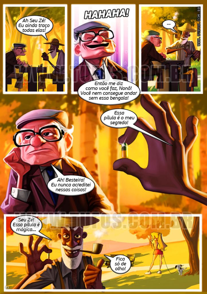 Dois velhinhos que ficam sempre na praça da cidade observando o movimento e também á mulherada... porém só ficam na vontade, até que um deles consegue uma "pílula mágica"...